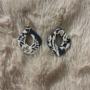 Handmade navy and white clay earrings with a unique design. Perfect for any occasion. Never worn.