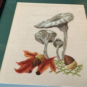 Handmade Needlepoint Mushrooms Framed Set of 3 Cottagecore Rustic Decor Art