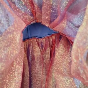 Handmade OOAK Floral Iridescent Ruffle Midi Dress Sheer Sleeve Coquette XS