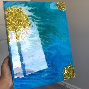 I made this beautiful piece recently on 11*14 stretched high quality canvas! It is all resined (mirror like layering on top)