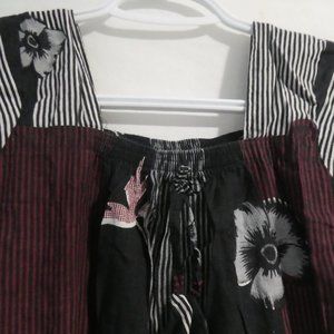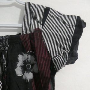 Handmade Patchwork Floral and Stripe Short Sleeve Square Neck Dress | BNWOT
