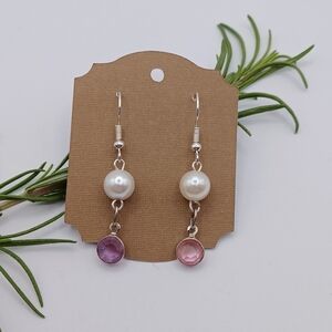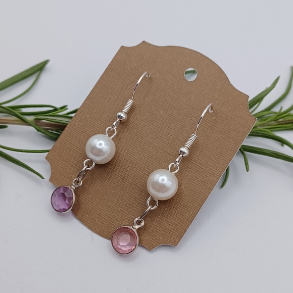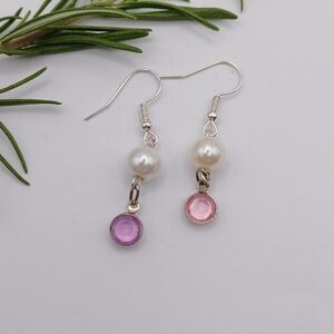 Lovely dainty earrings with faux pearl and faux crystal drops. Handmade by me.