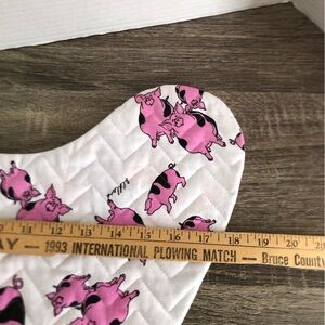 Add a playful touch to your holiday decor with this delightful stocking featuring a whimsical pig pattern. The vibrant purple and pink colors create a festive atmosphere. Perfect for the pig lover in your life!