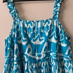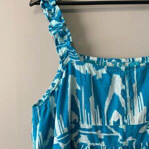 Handmade Plus Size Cotton Blue Pattern Elastic Straps Dress