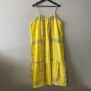 Handmade Plus Size Cotton Lightweight Yellow Paisley Print Crochet Straps Dress