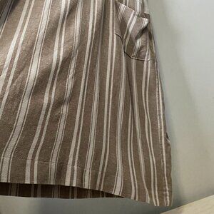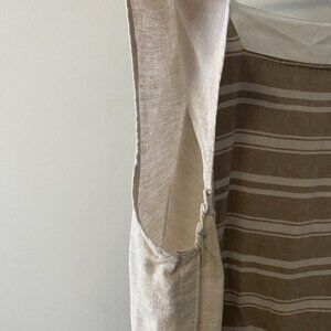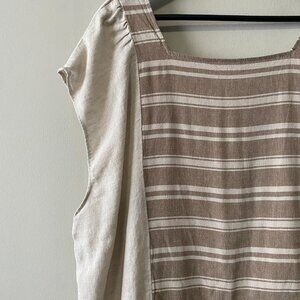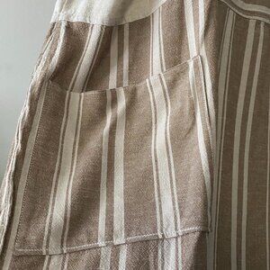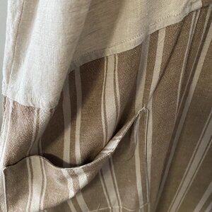 Handmade Plus Size Cotton Linen Patch Pockets Neutrals Brown Stripes Dress