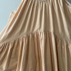 Handmade Plus Size Cotton Orange Tan Cream Gingham Elastic Straps Dress
