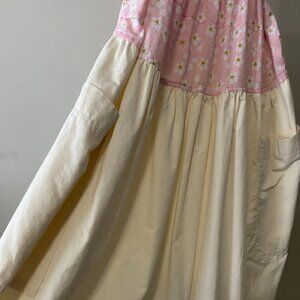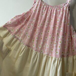 Handmade Plus Size Cotton Pink Cream Floral Elastic Straps Patch Pockets Dress