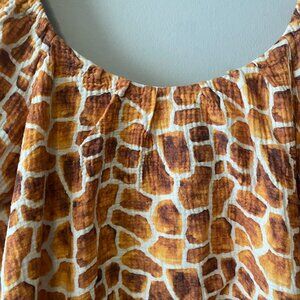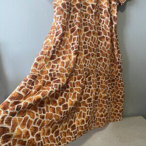 Handmade Plus Size Double Guaze Cotton Giraffe Print Inseam Pockets Dress