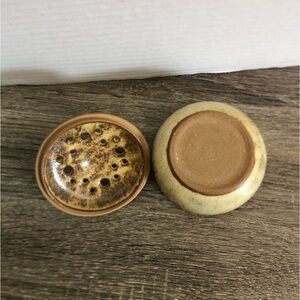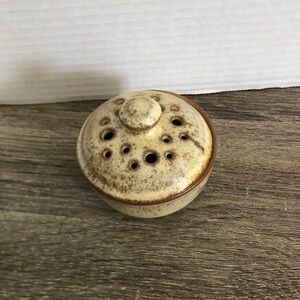 Lovely little garlic keeper made with pottery. Speckled sort of design. Unsigned.