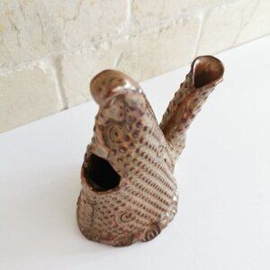 Handmade Pottery Whatsit Vase, Spotted Creative Unusual Decor Signed Brown Ceram