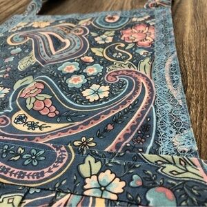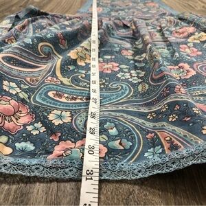 This gorgeous paisley patterned apron has a lace trim detail along the hem.
