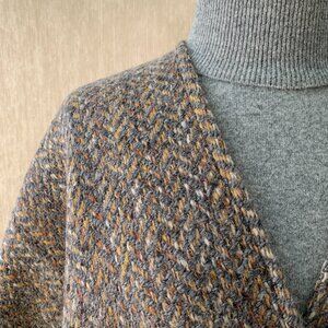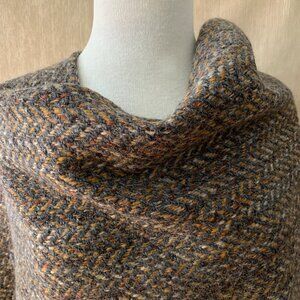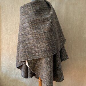 Elevate your winter wardrobe with this incredibly chic and unique vintage handmade cape, crafted from luxurious, heavy-weight pure Italian wool. The classic herringbone tweed pattern features a sophisticated blend of Gold, Gray, and Cream tones, making it a perfect, versatile layering piece for the cooler seasons.
