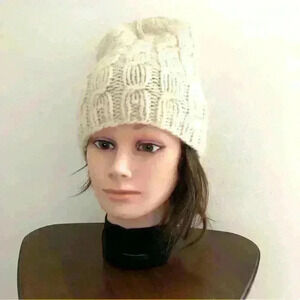 Knitted with natural, undyed, thick pure off-white wool yarn.