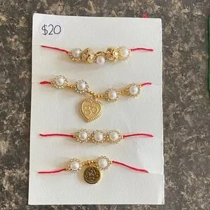 Elegant Rakhi set featuring gold and white pearls.