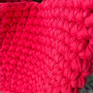 Charming handmade knit bag in a vibrant red color. Perfect for carrying small treasures. Thick material.