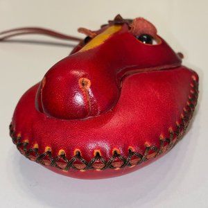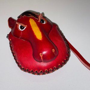 Handmade Red Leather Horse Mini Purse Wallet Winking Comic Zipper Handle