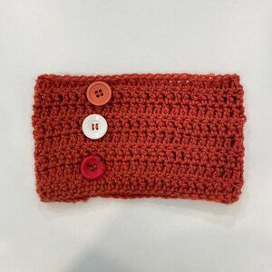 Handmade Red/orange Knit Buttons embellished Headband/Neck Warmer With 3 Decorat