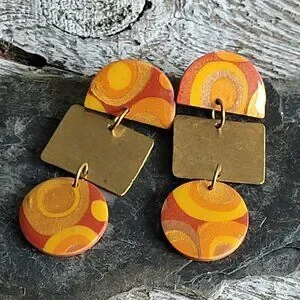 Elevate your accessory game with our stunning handmade drop earrings, inspired by the vibrant vintage vibes of the 70s. Crafted from lightweight polymer clay in rich rust and gold hues, these earrings are not only a stylish statement but also comfortable for all-day wear. The durable stainless steel ear posts ensure a secure fit, making them perfect for any occasion. Add a touch of retro charm to your collection and let your style shine!