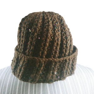 Ribbed handmade knitted tuque. Rich chocolate brown yarn with shiny, metallic strands and sequins. 100% acrylic. Excellent used condition. Like new. Smoke free home. Open to offers! Bundle and save! If you're new to Poshmark - welcome! Use our sign up code SNOWCLOVER to get $15 off your first purchase!