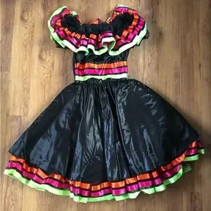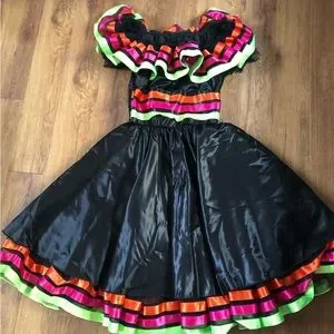 I would say this could fit anywhere between ages 6-9 because the waist is stretchy with elastic and so is the top. See photos for measurements.
