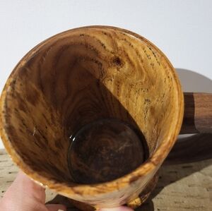 Enjoy your favorite beverages in this stylish wooden mug. The natural wood finish adds a rustic touch.