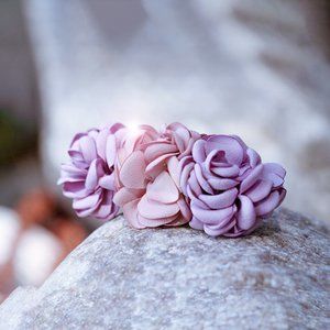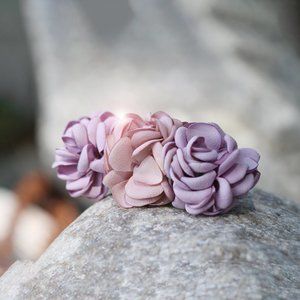 Handmade Satin Pink Rose Flower Lavender Beautiful Hair Barrette Clip for Her