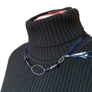 Handmade - Short necklace - ruban feather & beads blue white
