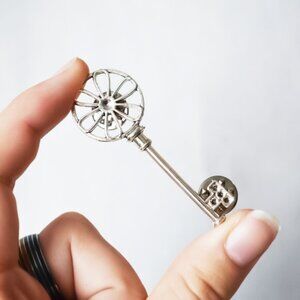 Unique pinwheel flower key-shaped pin made from an upcycled key pendant. Lightweight and adorable!