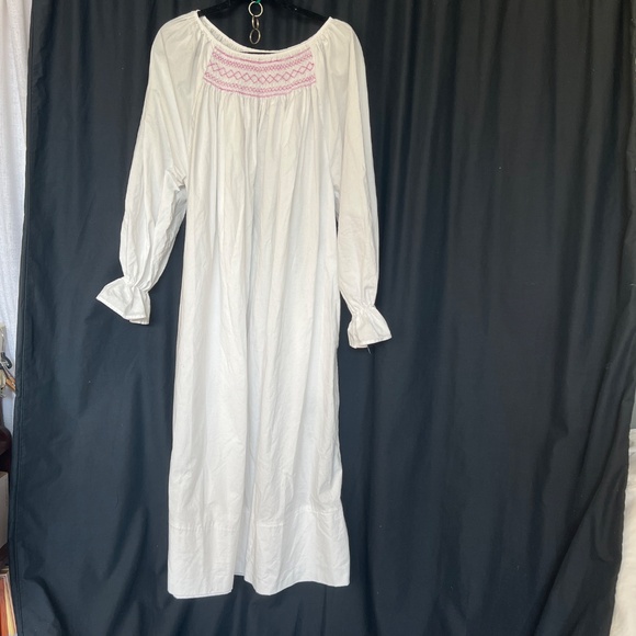 Handmade Smocked Nightie Nightgown Size XL White Pink Stitching Maxi Pockets