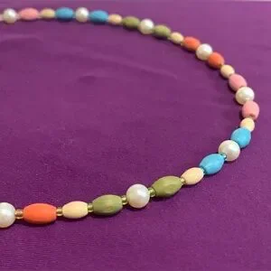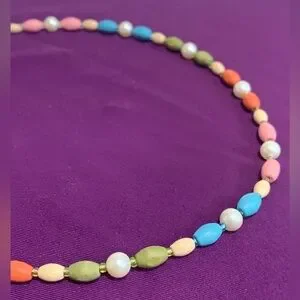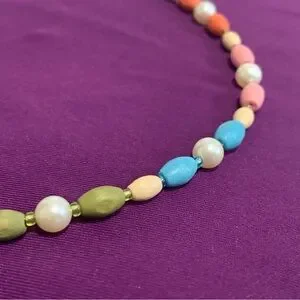 Handmade by me from entirely recycled and rescued beads sourced from second hand pieces. This necklace is super pretty and would make the perfect accessory for any springtime occasion - maybe even Easter 🐣 if you celebrate!