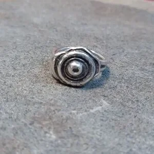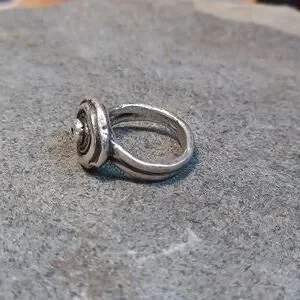 This is a handmade ring by a Vancouver Island artist. It is very unique with a bulls eye pattern.