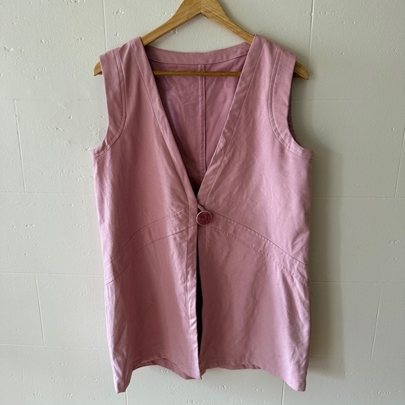 This handmade vest is one-of-a-kind and full of charm. It has a soft suede-like finish that feels great and is easy to wear. The standout? A single gorgeous statement button that pulls the whole look together. Perfect layered over blouses, turtlenecks, or dresses. In excellent pre-owned condition and fits a medium/large (refer to measurments!).