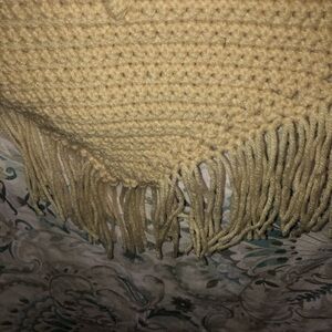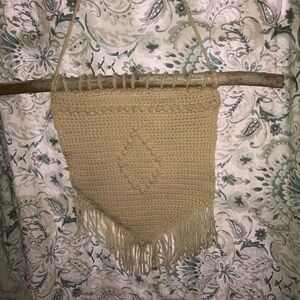 Beautiful crochet wall hanging. Features intricate patterns and fringe. Perfect for boho decor.