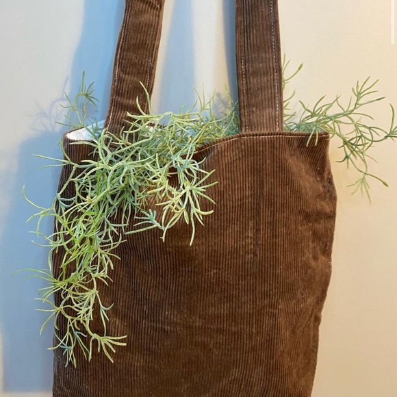 Handmade double lined tote bag, brown corduroy exterior with white inner lining. Also available on my Instagram which is linked in my bio.