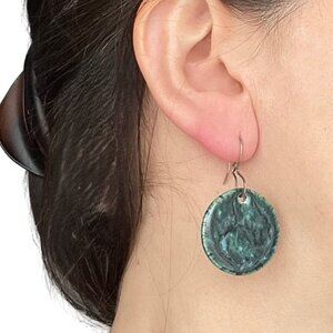 Handmade Two Pairs Ceramic and Ox Bone Round Earrings Artisan Green Blue Brown