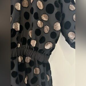 Handmade Velvet Velour Silver Black Polka Dot Maxi Midi Mesh Lined Dress