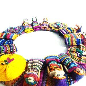 Handmade Vintage WORRY DOLL WREATH Stress Relief Therapy Mayan Costume Fear