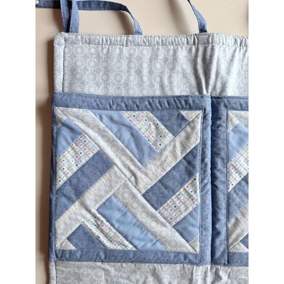 Handmade White Blue Floral Heart Spinning Ribbons Quilted Wall Hanging Organizer