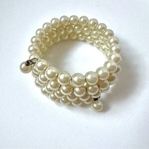 Handmade White Faux Pearl Beaded Memory Wire Bracelet