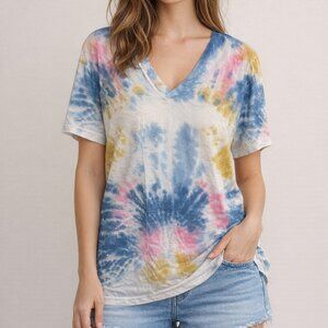 Handmade White with Various Purple Twisted Tie Dye Graphic Tee NWOT L