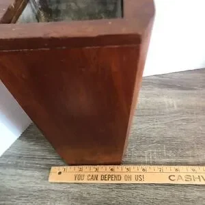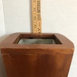 Elegant wooden rectangular vase. Perfect for home decor. Solid wood vase, seems to be teak or something similar. The insert is a handmade tin piece that fits perfectly into the centre. Based on the design and quality of the piece I would say this was handmade in the mid 20th century. Classic midcentury modern design.