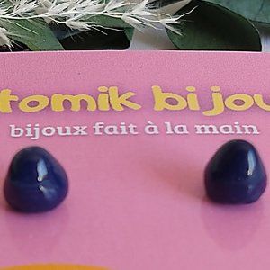 Handmade blue polymer clay earrings. Boucles d'oreilles fait à la main en pâte polymère couleur bleu forme conique. Étant donné que tout dans ma boutique est fait à la main, il peut y avoir de légères variations de couleur/forme/taille pour les articles.