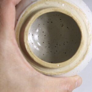 A handmade pottery jar by yours truly, glazed on the inside. Perfect for a few small items or to keep your home made face cream in.