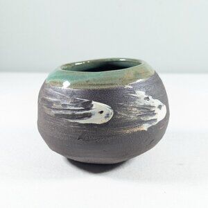 Handmade ceramic pottery bowl, coconut shaped bowl with spirit fish