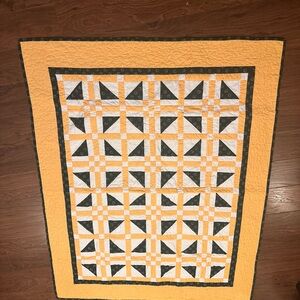 Add a touch of elegance to your home with this stunning yellow, white , green geometric quilt. Perfect for any bedroom or living space.
