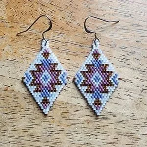 beaded handmade earring with a aztec-y feel to them, throw on to complete any boho style outfit. made with peyote stitch with glass miyuki beads.