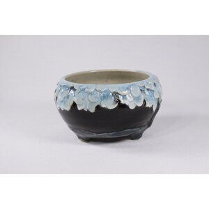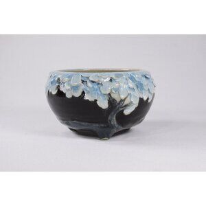 Amateur pottery, made by yours truly! This wheel thrown bowl was finished with several surface decorating techniques, creating a semi-3D look of trees with a full canopy of leaves. The piece has been hand painted with underglazes in various shades of white, blues and black and with a splash of blue to the inside of the bowl, suggesting a small body of water.