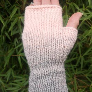 Handmade in Canda Knitted Fingerless Texting Gloves Wool Blend Pink Grey Gift