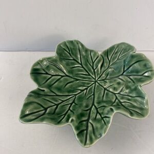 Ceramic Leaf Shaped Green Veined Trinket Dish